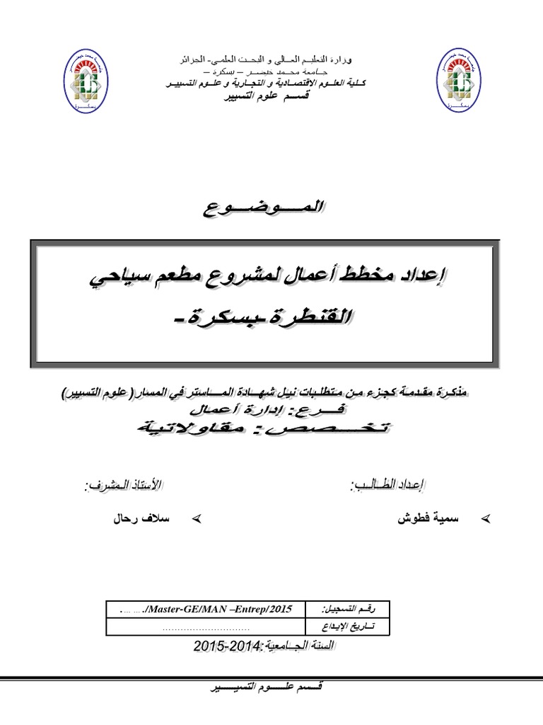 اعداد مخطط الاعمال لمشروع مطعم سياحي
